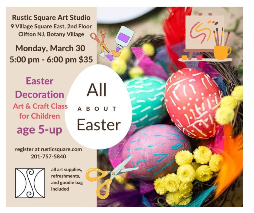 All About Easter 1 – Easter Decorations- Art Class for Kids (5-up), Monday, March 30, 2026, 5-6 pm, $35 per child When March 30, 2026 5:00 pm - 6:00 pm Add To Calendar Download ICS Google Calendar iCalendar Office 365 Outlook Live Bookings $35.00 Event Type Art Classes for Kids Art Events for Kids & Family Bookings Tickets All About Easter 1: Easter Decorations - Art & craft class for Kids (5-up). All art supplies and water included. Non refundable. Sibling discount available. Price$35.00 Registration Information First/Last Name * Email * City/Town * State/County * Zip/Post Code * Phone Number * Allergy * How did you find about us? * Select ... Google Map Google Search Word of Mouth Past Events Friend Facebook Post Facebook Group Other I Accept Event Policy * I consent to my submitted data being collected and stored as outlined by the site Privacy Policy. Booking Summary 1 x Standard Ticket $35.00 Total Price $35.00